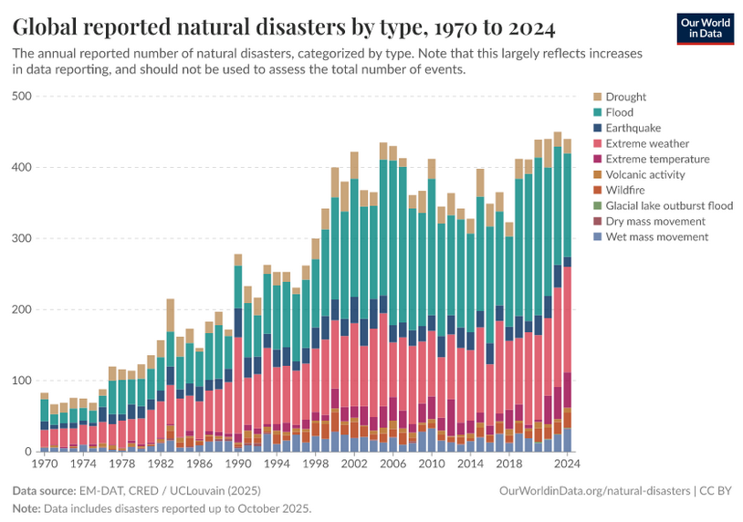 Now, I know some will argue that the increase is just due to better reporting, but I've done some research and found that this is not a real assumption, and is incorrect. Just because we have computers now doesn't mean we didn't have accurate reporting from around the world via paper records, which was done dilligently since around 1900...